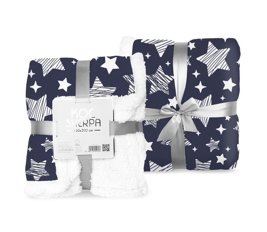 FARO Fleece deka s beránkem hvězdy modrá 150/200