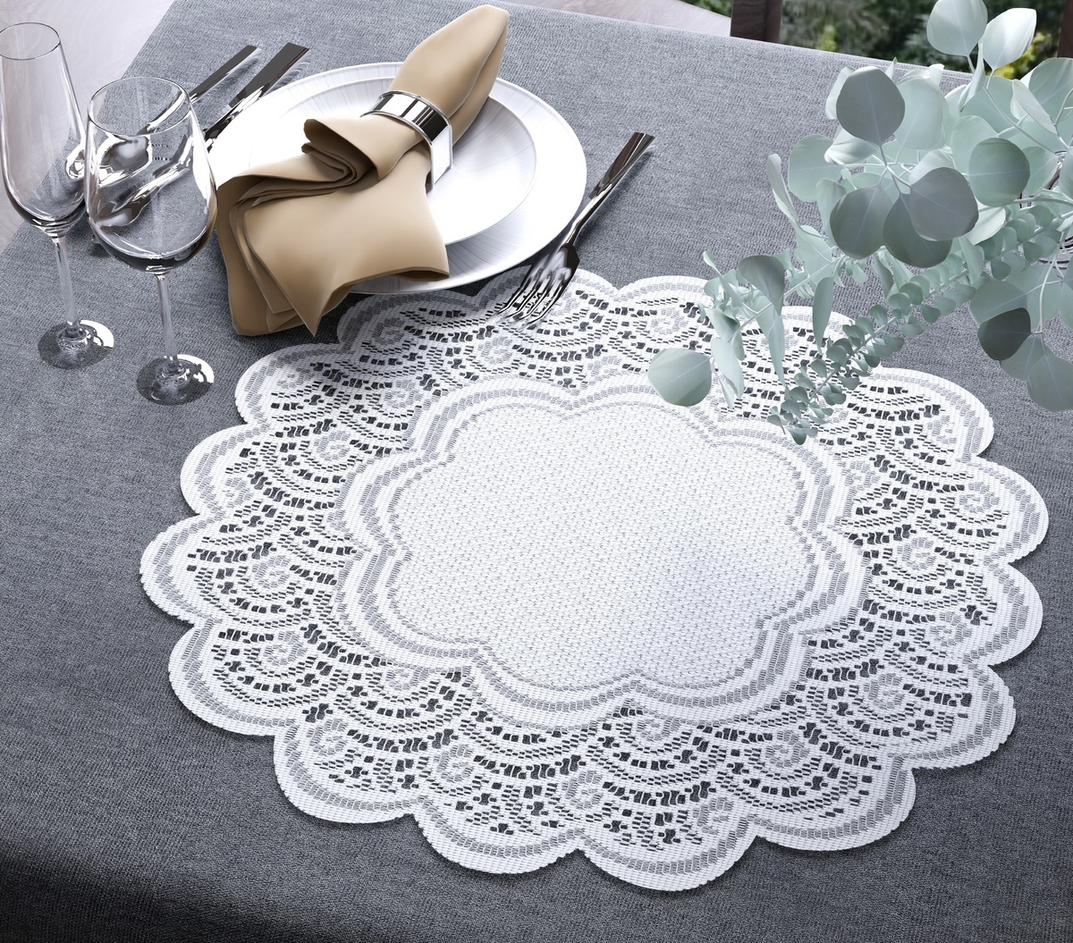 Stále populární žakárový ubrus s decentním vzorem se skvěle hodí jak do moderního interiéru tak do bytu v klasickém stylu.Materiál: 100 % polyesterBarva: bíláRozměr:průměr 40 cm prečítať celé