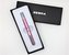 Výsuvné kuličkové pero v elegantním designu. Vhodné jako dárek, dodávané v dárkové krabičce.Tělo pera je kovové, možnost gravírování loga laseremDélka ve složeném stavu: 105 mmDélka v rozloženém stavu: 130 mmŠířka stopy: 0,24 mmBarva pera: růžováBarva náplně: modráTyp náplně: F