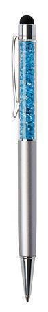 Kuličkové pero zdobené klasickým designem a originálními krystaly Swarovski®. Svá chytrá zařízení můžete snadno ovládat dotykem na konci pera.Tělo pera je kovové, možnost gravírování laseremBarva těla: stříbrnáBarva krystalu: azurově modráBarva tuhy: modráŠíře stopy: 0,7 mmBaleno v dárkové...