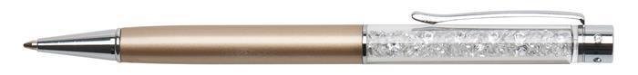Kuličkové pero zdobené klasickým designem a originálními krystaly Swarovski® v horní části pera.Tělo pera je kovové, možnost gravírování loga laserem.Barva pera: zlatáBarva krystalu: bíláBarva tuhy: modráŠířka stopy: 0,7 mmBaleno v dárkové krabičce. prečítať celé