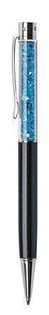 Kuličkové pero SWAROVSKI® Crystals, černá, modrá aqua krystaly v horní části pera, 14 cm, ART CRYSTE