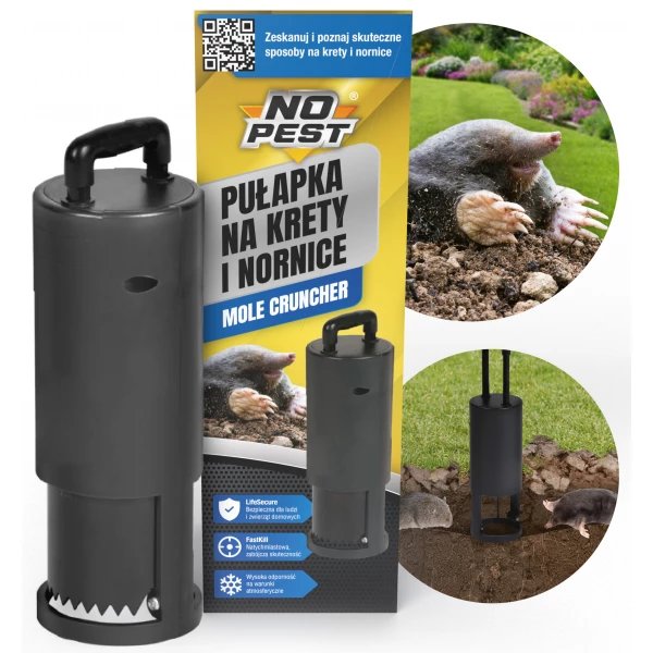 Táto mechanická pasca ľahko odhalí a odstráni škodcov z vašich pozemkov. Stačí nájsť tunely, odstrániť prístupovú vrstvu zeminy a pascu umiestniť dovnútra. Potom už stačí počkať na chytenie prvých krtkov či hrabošov. Vďaka opakovanému použitiu a jednoduchej inštalácii je NO Pest praktickou a ekonomickou voľbou pre každého záhradkára.