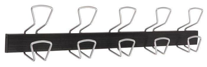 Věšák, na stěnu, kovový, 5 kovových háčků, ALBA, černý/stříbrný