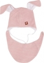 Z&Z Dvouvrstvá pletená čepice na zavazování s šátkem 2v1, Zajíček - růžová, vel. 86; 86 (12-18m)