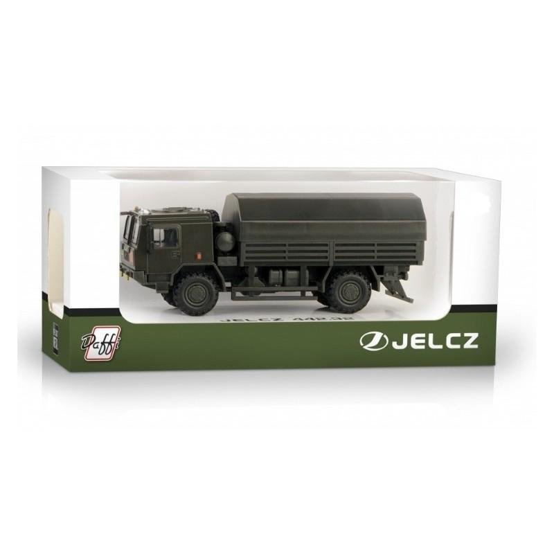 DAFFI Jelcz 442.32 Wojskowy 1:50 Model kultowego modelu JELCZ 442.32, który wykonany jest w skali 1:50 firmy DAFFI. Model charakteryzuje się znakomitą jakością i wiernością wykonania. Model JELCZ 442.32 wykonany został z metalu i plastiku na gumowych oponach. Zabawka rozbudzi w Twoim dziecku dużą...