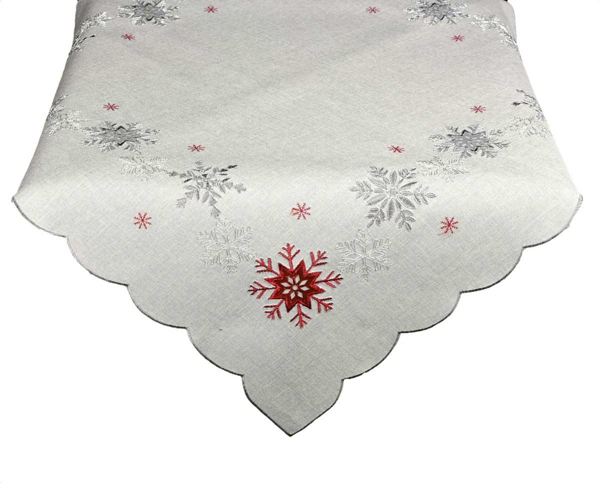 Forbyt, Ubrus vánoční, Vločky šedočervené, šedý 85 x 85 cm