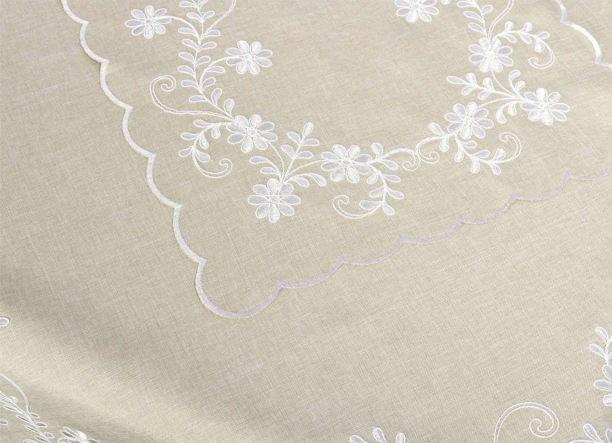 Tento krásný vyšívaný polyesterový ubrus je dokonalou volbou pro ty, kdo chtějí svému interiéru dodat na eleganci a styl.