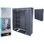 šatní skříň s 1 ocelovou tyčí na šaty a 8 policemi, rozměr 141x45xh167cm. celková hmotnost: 3400 g, netkaný potah s pp spojovacími tyčemi a ocelovými trubkami (průměr 13 mm). lemování a zip ve světle šedé barvě a zbytek v tmavě šedé barvě. prečítať celé