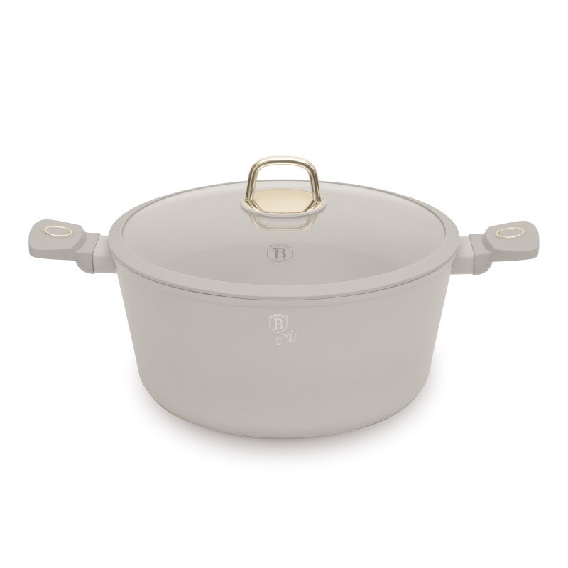 • Material: forged aluminum with non-stick titanPro coating• Casserole with lid O30*13,5 cm 8L• Color: matt cream / • 3x durable non-stick titanPro coating• Stay cool ergonomic soft touch handle• Tempered glass lid with soft close heat resistant silicon system• Stainless steel knob with gold PVD...