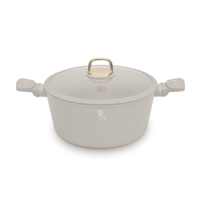 • Material: forged aluminum with non-stick titanPro coating• Casserole with lid O28*12,4 cm 6,1L• Color: matt cream / • 3x durable non-stick titanPro coating• Stay cool ergonomic soft touch handle• Tempered glass lid with soft close heat resistant silicon system• Stainless steel knob with gold...