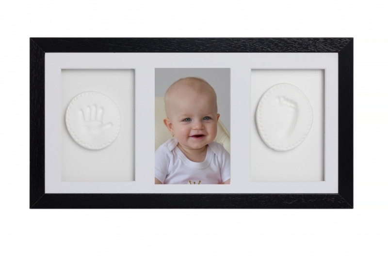 Sada na otisky nožiček či ručiček, trojrámek - dárková sada pro miminko - černá