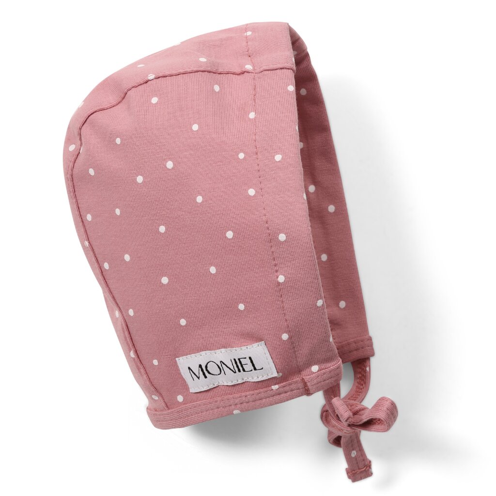 Moniel Dětská rostoucí zavazovací čepice Dots růžová je vhodná pro miminka od narození. Má praktické šňůrky, kterými lze regulovat velikost čepice a přizpůsobit velikosti hlavičky miminka. Šňůrky zavážete pod bradou miminku a čepička tak drží na svém místě a nesjíždí. Ručně šitá v ČR. Velikost od narození do 2 let.