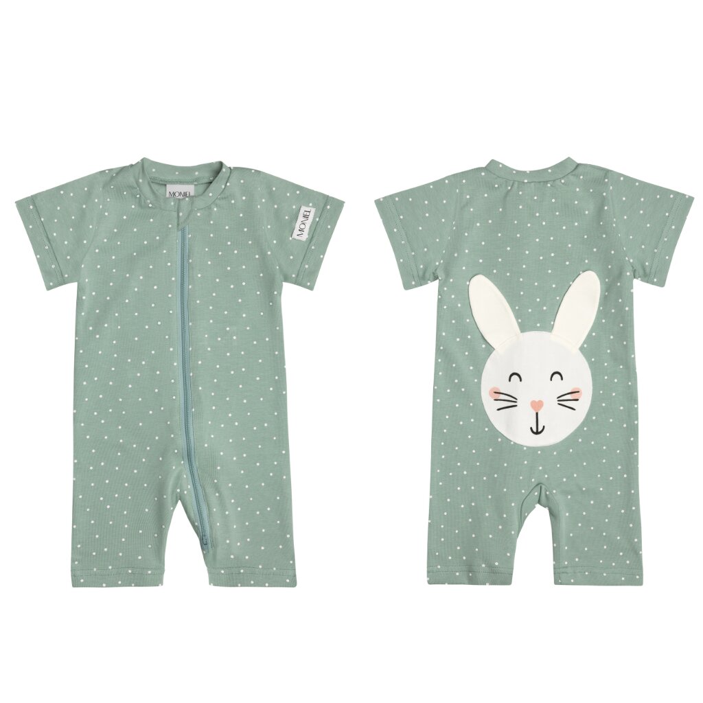 Moniel Dětský overal s krátkým rukávem Králík Dots mintová 74 cm