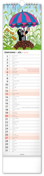 Praktický kravatový formát kalendáře s ilustracemi Zdeňka Milera. Ilustrace v kalendáři doplňuje české a slovenské kalendárium se jmény, svátky, památnými dny a fázemi měsíce. Každý den má prostor pro poznámky, víkendové dny jsou barevně odlišené od pracovních. prečítať celé
