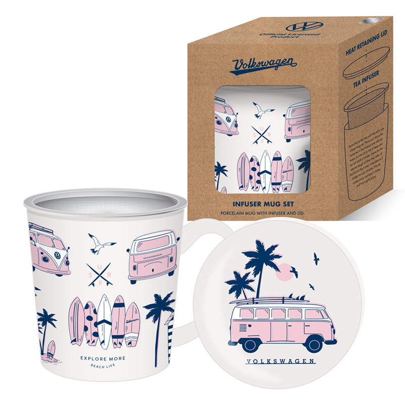 Sada porcelánový hrnek, sítko na čaj a víčko Volkswagen- Nová dobrodružství