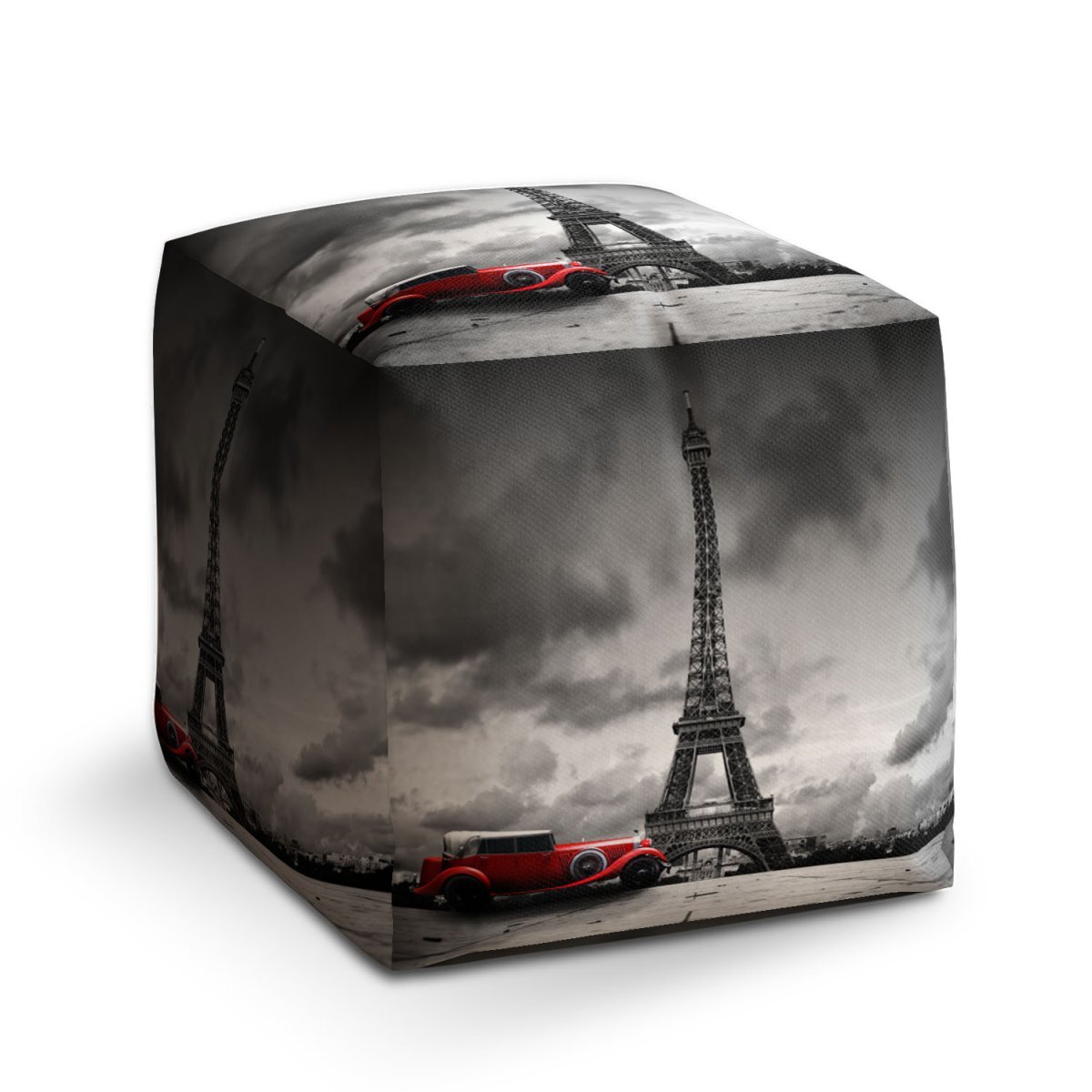 Taburet Cube Eiffelova věž a červené auto: 40x40x40 cm
