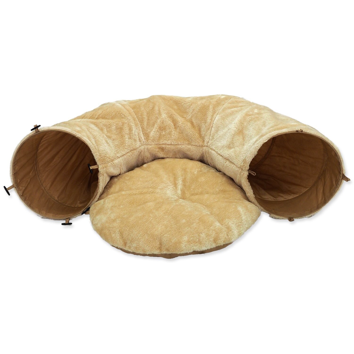 Tunel Magic Cat plyš tvar U s polštářkem béžový 95x26cm