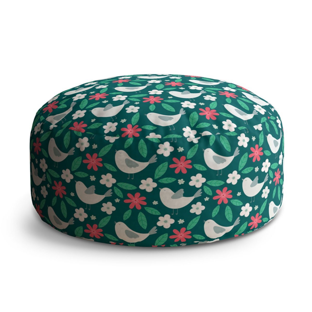 Taburet Circle Červené kvítí s ptáčky: 38x48 cm