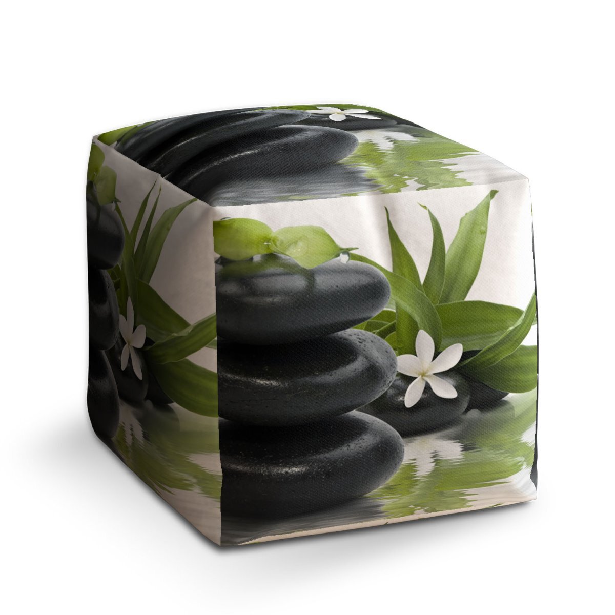 Taburet Cube Květ s kameny: 40x40x40 cm