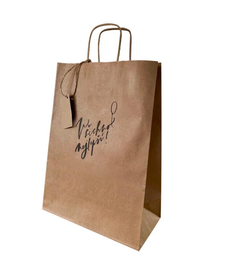 Be Nice přírodní dárková taška s nápisem Všechno nejlepší a se jmenovkou. Rozměry 22 x 28 cm prečítať celé