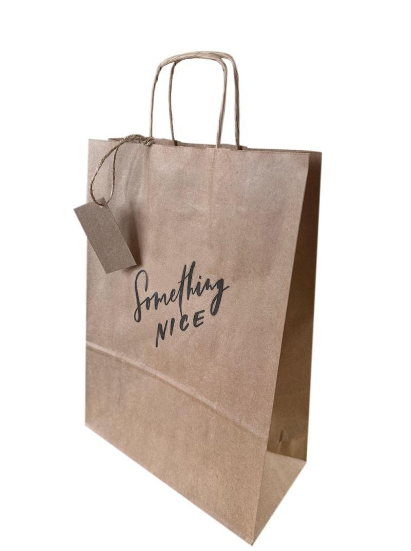 Be Nice přírodní dárková taška s nápisem Something Nice a se jmenovkou. Rozměry 22 x 28 cm prečítať celé