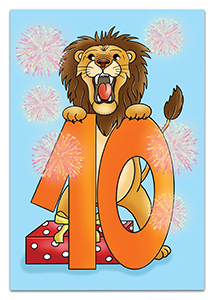 Blahopřání k 10.narozeninám se lvem. Přání je vevnitř zdobeno motivy z titulní strany s textem Všechno nejlepší k narozeninám!. Baleno v bílé obálce. Rozměr 19,5x13,5cm. prečítať celé