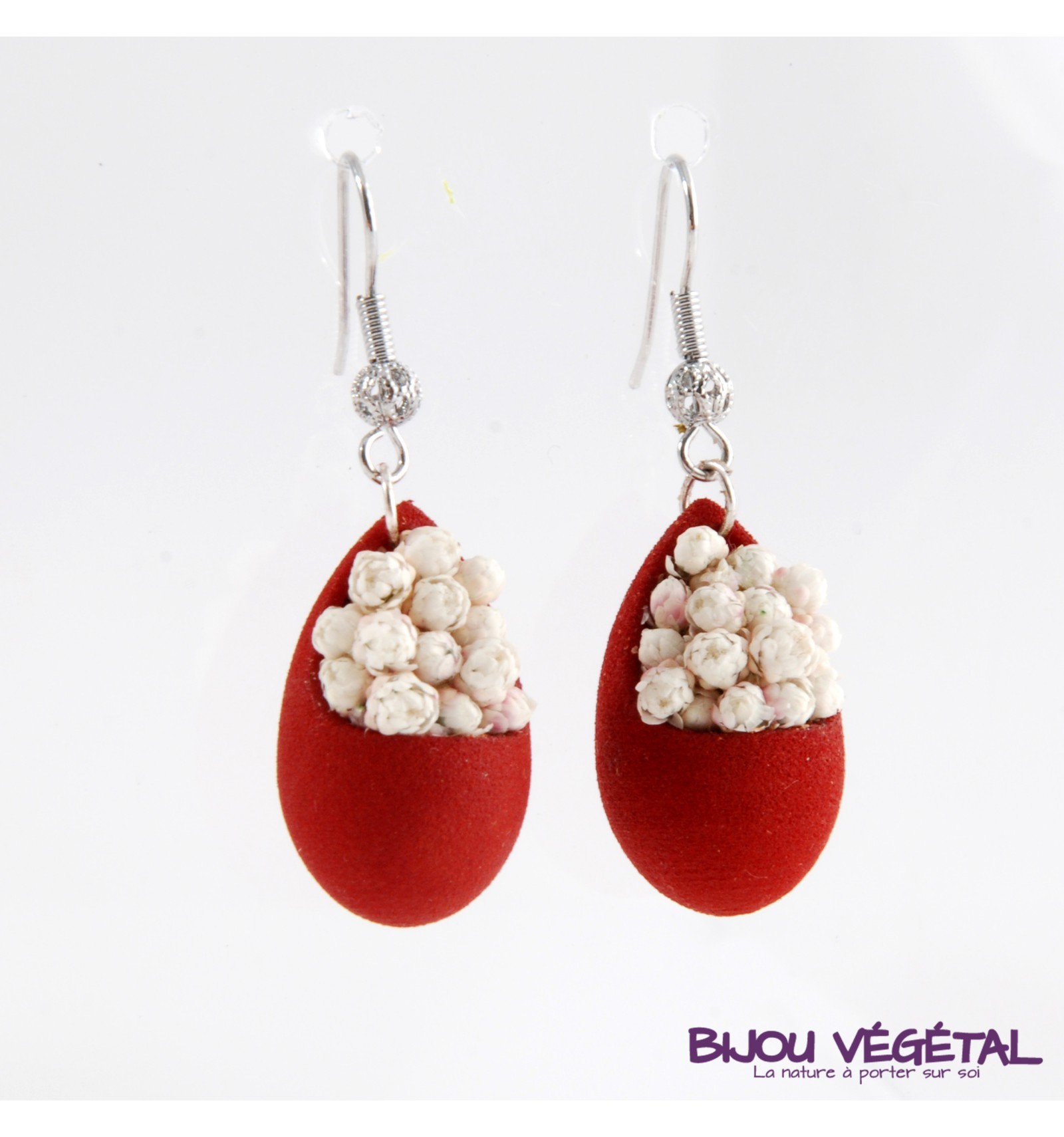 Živé šperky - Náušnice Slza červené s trvalými bílými květy