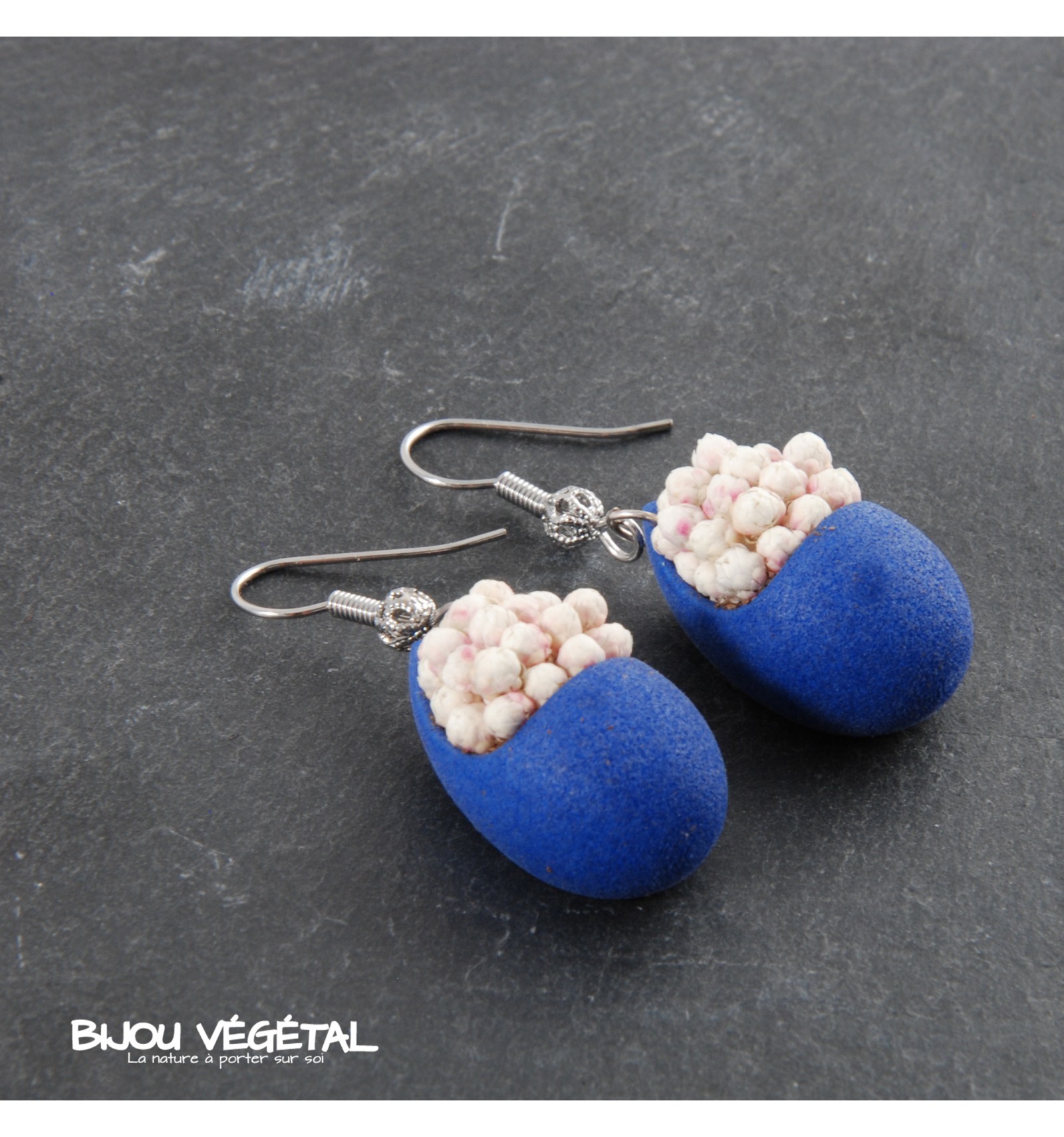 Živé šperky - Náušnice Slza modré s trvalými bílými květy