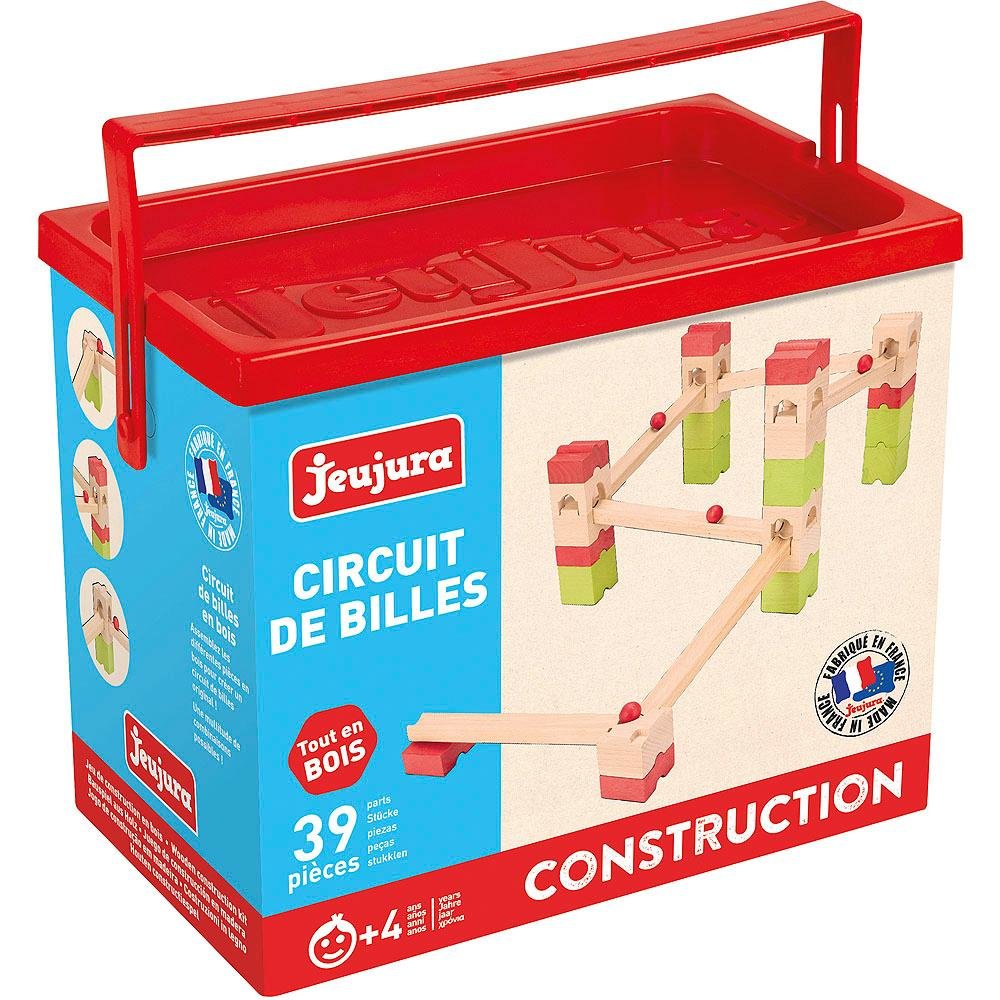 Dřevěná stavebnice a kaskáda s barevnými a přírodními dílky. Rozvíjí prostorovou představivost a zručnost dětí. Francouzská značka Jeujura se specializuje na výrobu dřevěných domečků a švýcarských chat, vyrábí ale také dětské tabule a další dřevěné hračky. Jeujura vyrábí své hračky ze dřeva z...