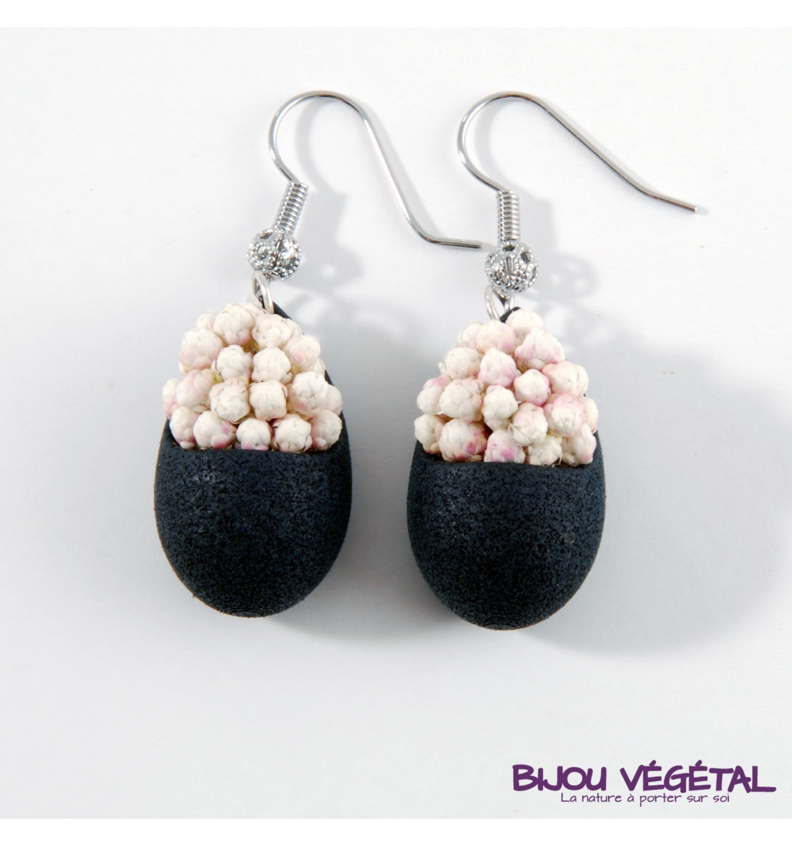 Živé šperky - Náušnice Slza černé s trvalými bílými květy