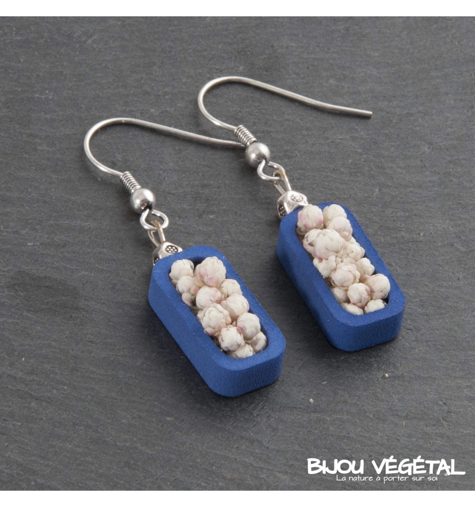 Živé šperky - Náušnice Vertigo modré s trvalými bílými květy