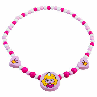 Náhrdelník z dřevěných korálků s obrázkem princezny bude ozdobou každé malé slečny.