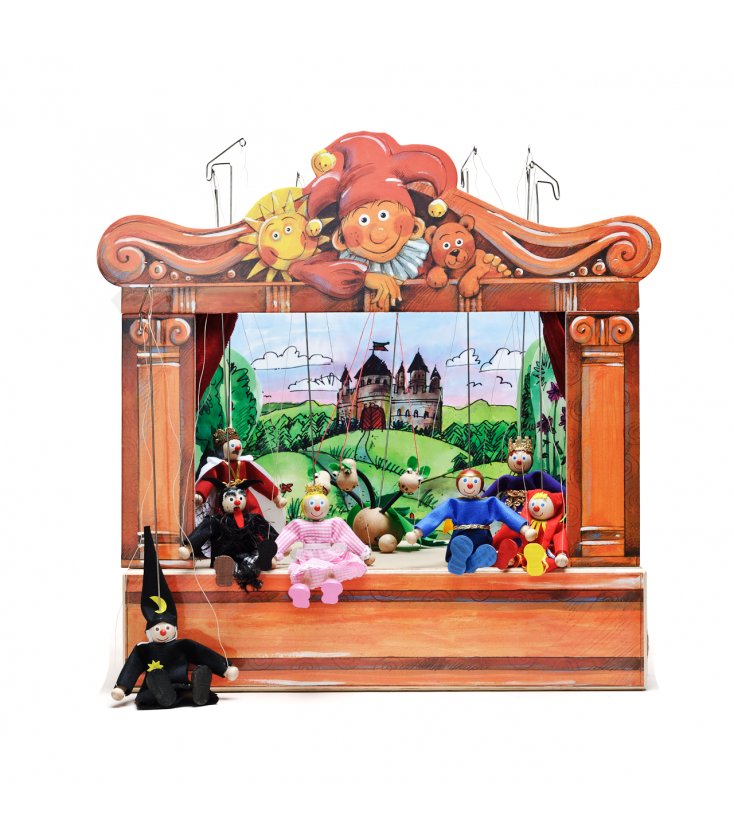 Krásně propracované dřevěné loutkové divadlo s jednotlivými loutkami, probudí u Vašich dětí fantazii, posílí paměťové a výrazové schopnosti.
