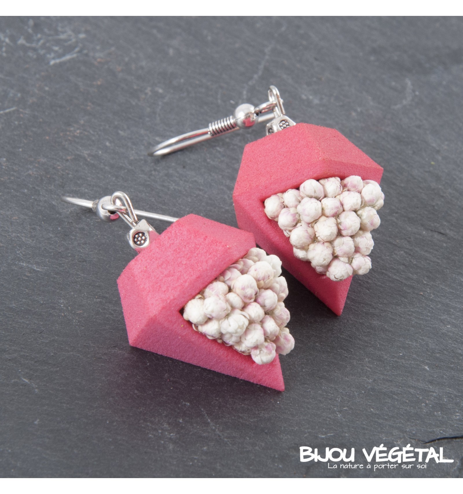 Živé šperky - Náušnice Diamant růžové s trvalými bílými květy