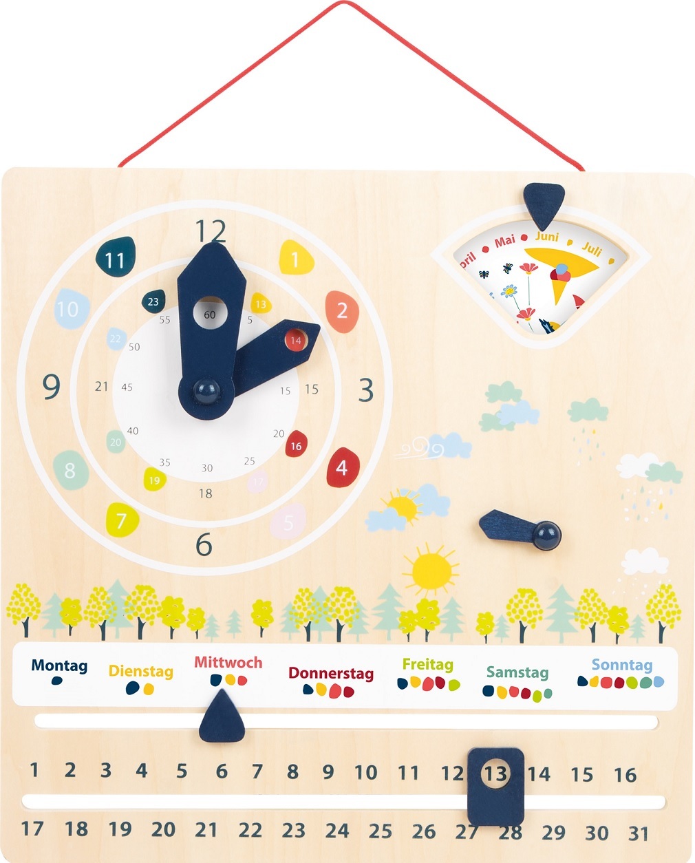 Tyto hodiny jsou vyrobeny ze 100% certifikovaného dřeva z odpovědných lesních zdrojů. Podporují děti v učení se času ve 12 a 24 hodinovém systému. Zároveň zprostředkovávají znalosti o počasí, dnech v týdnu, měsících a ročních obdobích hravým způsobem...