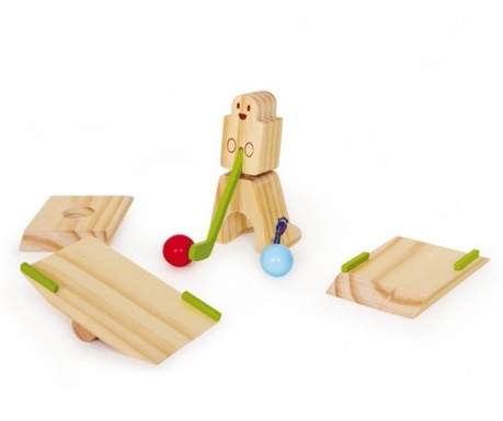 Jdeme na golf! Hráč se pokouší dostat dvě kuličky přes houpačku do cíle. Bezvadná hrací idea ze sady smallfoot design, která nikdy nenudí. Šestidílný stolní minigolf ze dřeva.Německá firma Legler zaměřená na výrobu kvalitních dřevěných hraček od roku 1996. Všechny dřevěné hračky značky small foot...