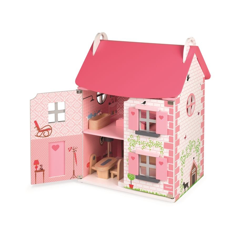 Dřevěný domeček pro panenky Mademoiselle Janod s příslušenstvím 11 ks nábytku od 3 let