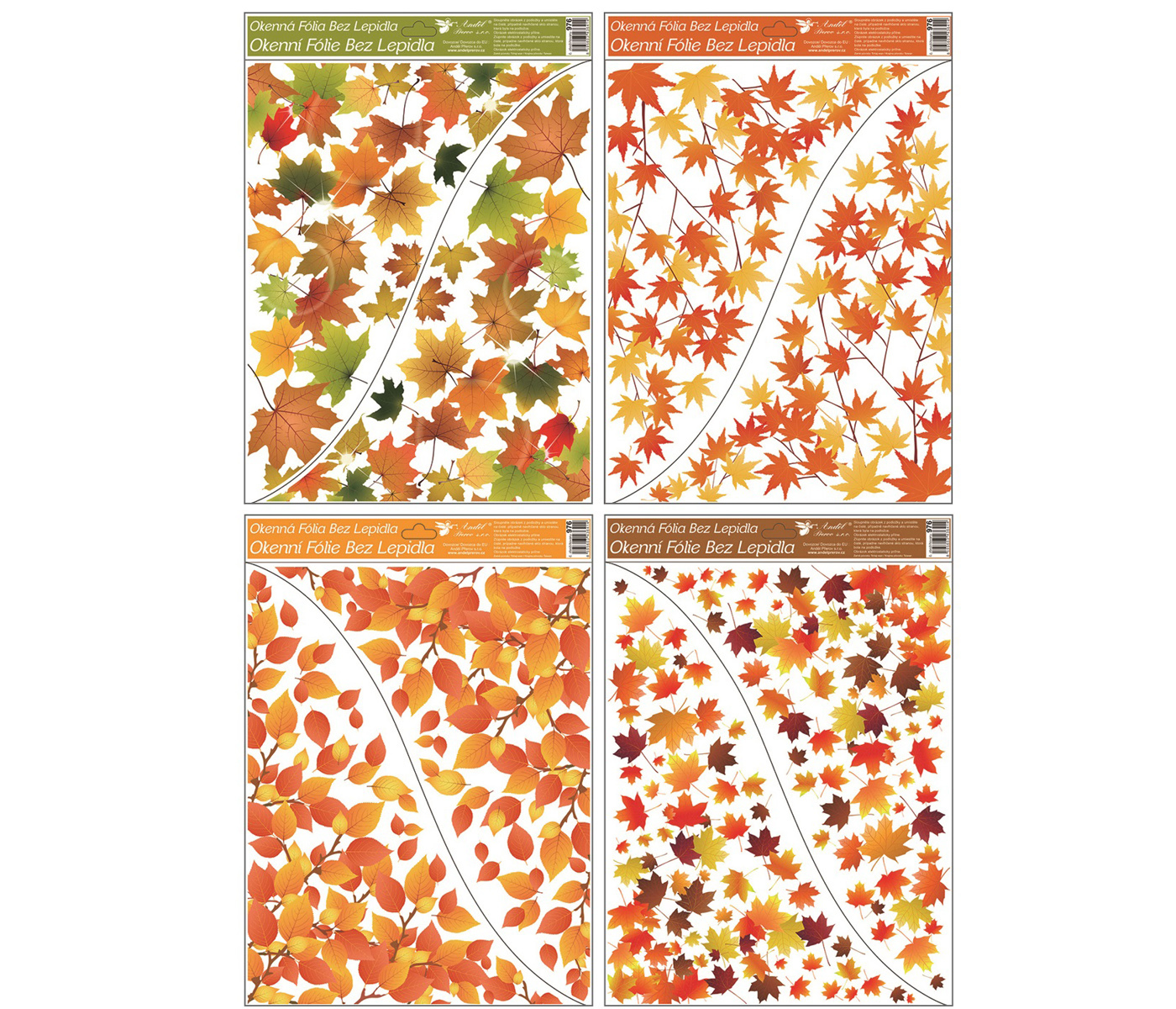 Okenní fólie v motivu podzimního listí Fólie neobsahuje lepidlo, jednoduše přilne na čistém okně, zrcadle apod.Mix motivů Rozměr: 42 x 30 cm prečítať celé