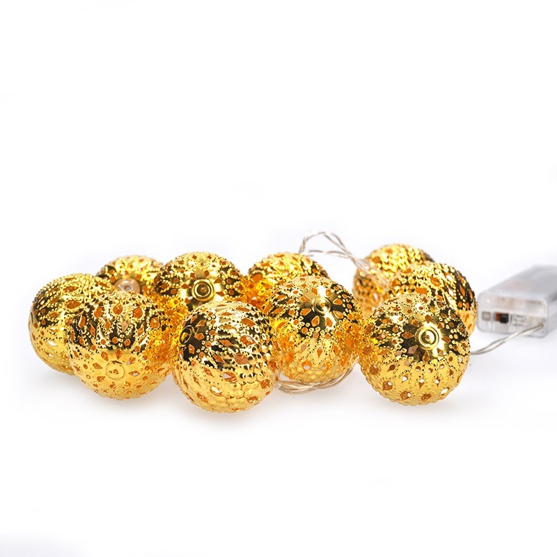 Interiérový vánoční LED řetěz v délce 1 m tvoří 10 zlatých kovových kouliček o průměru 4 cm s integrovanými LED diodami s příjemným teplým bílým svitem pro dekorativní osvětlení vašeho domova nebo vánočního stromečku. Kouličky jsou od sebe vzdáleny vždy 10 cm, přívodní kabel je transparentní. Napájení zajišťují 2 AA baterie, které nejsou součástí balení. Krytí IP20 označuje vhodnost použití pouze v interiéru bez zvýšené vlhkosti.