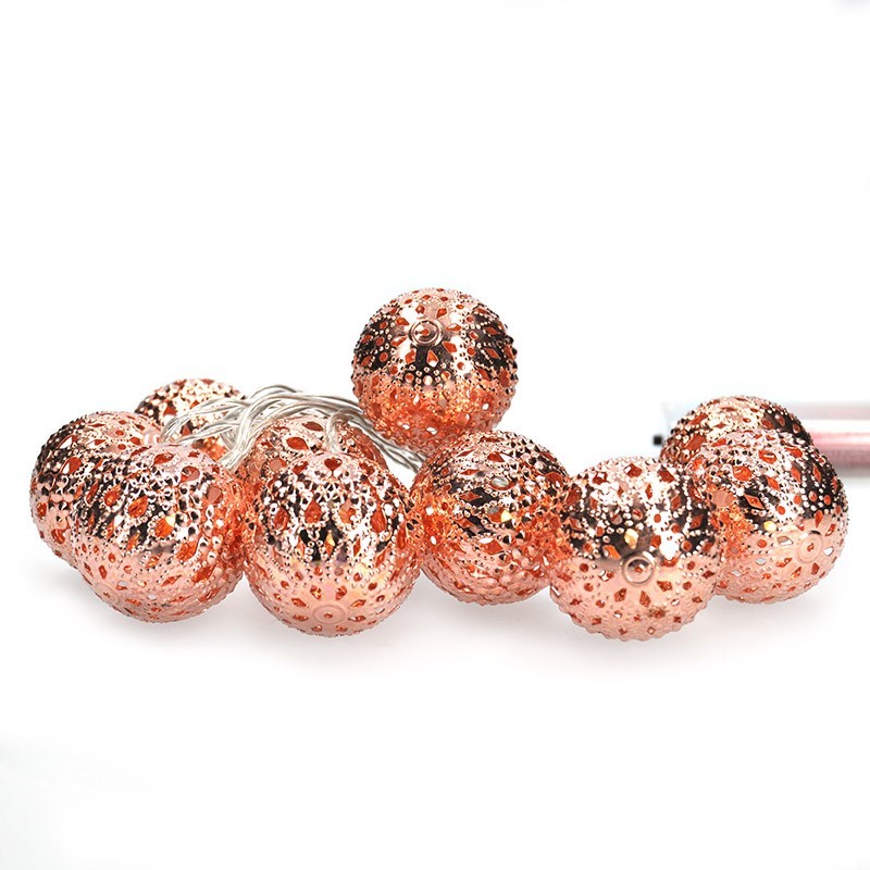 Interiérový vánoční LED řetěz v délce 1 m tvoří 10 měděných kovových kouliček o průměru 4 cm s integrovanými LED diodami s příjemným teplým bílým svitem pro dekorativní osvětlení vašeho domova nebo vánočního stromečku. Kouličky jsou od sebe vzdáleny vždy 10 cm, přívodní kabel je transparentní. Napájení zajišťují 2 AA baterie, které nejsou součástí balení. Krytí IP20 označuje vhodnost použití pouze v interiéru bez zvýšené vlhkosti.