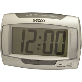 BudíkNapájení z bateriePouzdro ve tvaru obdelníkuPlastové pouzdroStříbrná barva pouzdraDigitální ciferníkCiferník s arabskými číslyOsvětlení displejeBudík prečítať celé