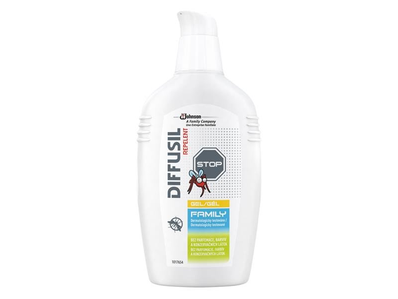 Diffusil repelent Family gel zajišťuje efektivní ochranu pokožky proti komárům až 4 hodiny.