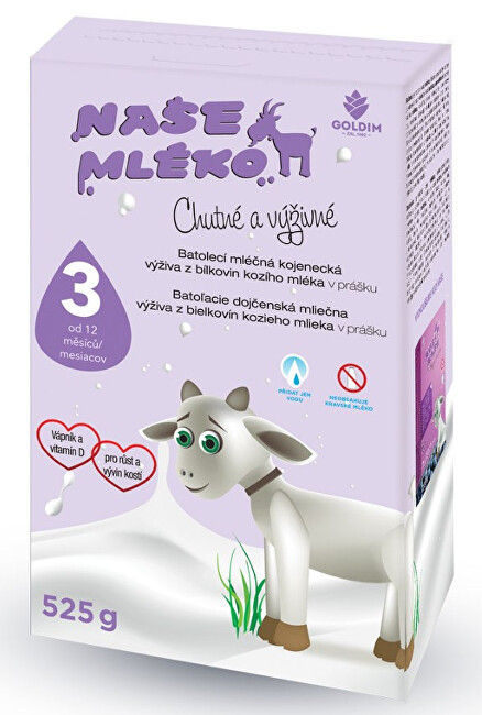 Naše mléko 3 je batolecí mléčná výživa z bílkovin kozího mléka v prášku pro děti od 12 měsíců do 3 let. prečítať celé
