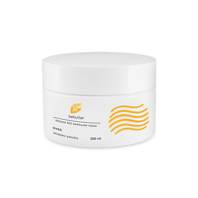 Bebutter Šlehané Bio bambucké máslo je přírodní krémový tělový balzám s jemnou obilnou vůní. Olej z ovsa setého podporuje schopnost přirozené hydratace, meruňkový a sójový olej intenzivně pečují o podrážděnou a popraskanou pokožku. Extrakty z měsíčku lékařského a pupečníku asijského přispívají svými regeneračními účinky ke zklidnění suché a citlivé pokožky.