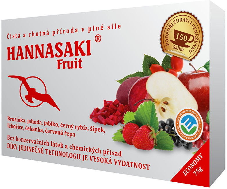 Hannasaki Fruit je vyvážená ovocná čajová směs vyrobená tak, aby byly zachovány maximální účinky jednotlivých ovocných složek, a aby byla zároveň docílena lahodná chuť. Čaj je obohacen o stoprocentně přírodní kapslovaná aromata. Název Hannasaki, v překladu jarní květ, představuje vlastnosti jako život plný energie, svěžesti, zdraví, čistoty a krásy, což všechno jsou schopnosti účinků tohoto čaje.