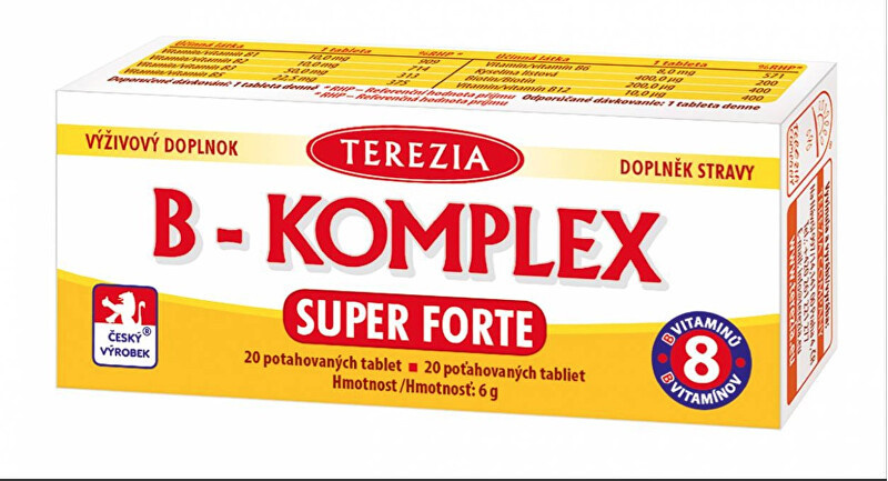 B-komplex Super Forte+ jedná se o unikátní komplex vitaminů skupiny B, které jsou rozpustné ve vodě. Tyto vitaminy jsou důležité pro zachování normální funkce tkání a pro správné fungování metabolismu a nervového systému. B-KOMPLEX SUPER FORTE+ obsahuje celkem 8 vitaminů skupiny B.