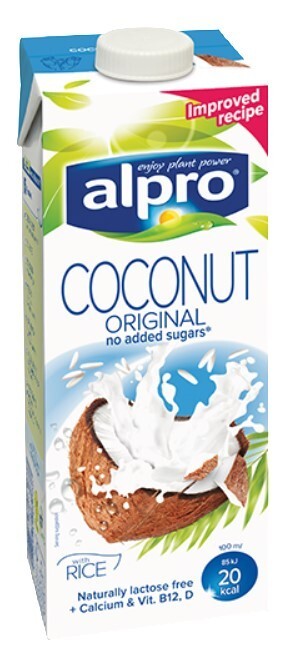 Kokosový nápoj s rýží značky Alpro, původem z Belgie. Nápoj má nízkou kalorickou hodnotu a obsahuje velké množství vápníku a vitamínů. Produkt bez přidaných cukrů, obsahuje pouze přirozeně se vyskytující cukry. Bez lepku a palmového oleje. Pro tu nejlepší chuť podávejte vychlazené.