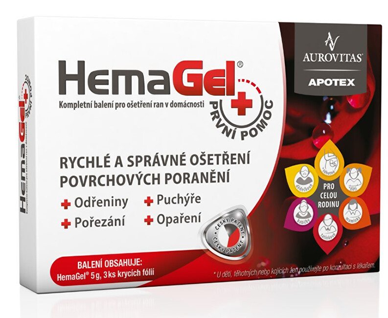 Aurovitas HemaGel PRVNÍ pomoc 5 g + 3 ks krycí folie