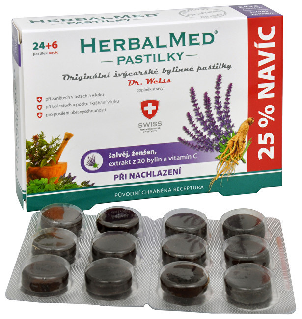 HerbalMed® pastilky Dr. Weiss - originální švýcarské bylinné pastilky se vyrábějí podle původní receptury ve Švýcarsku. Účinnost a jedinečnost zaručuje pečlivě kontrolovaná kvalita a unikátní kombinace více než 20 extraktů z léčivých bylin, medu a vitamínu C. prečítať celé